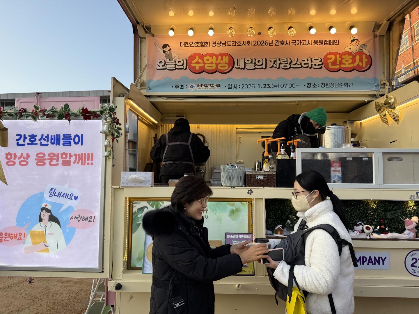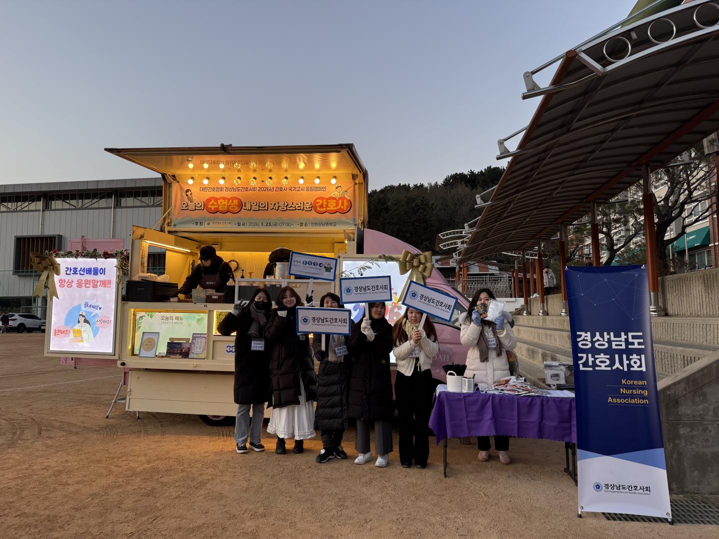 경상남도간호사회는 지난 1월 23일, 2026년 간호사 국가고시에 응시하는 예비 간호사들을 응원하기 위해 푸드트럭 응원행사를 진행했다.